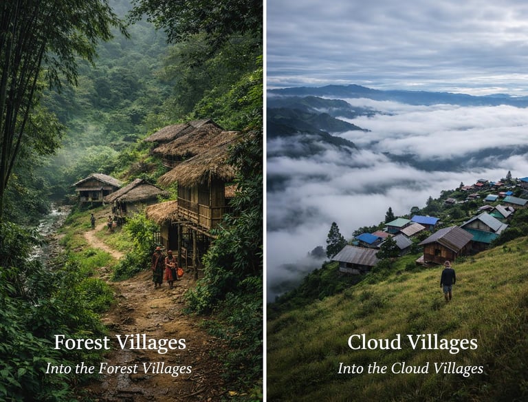 Villages appear above the clouds, where life is shaped by altitude, seasons, and centuries-old traditions of the Idu Mishmi people.